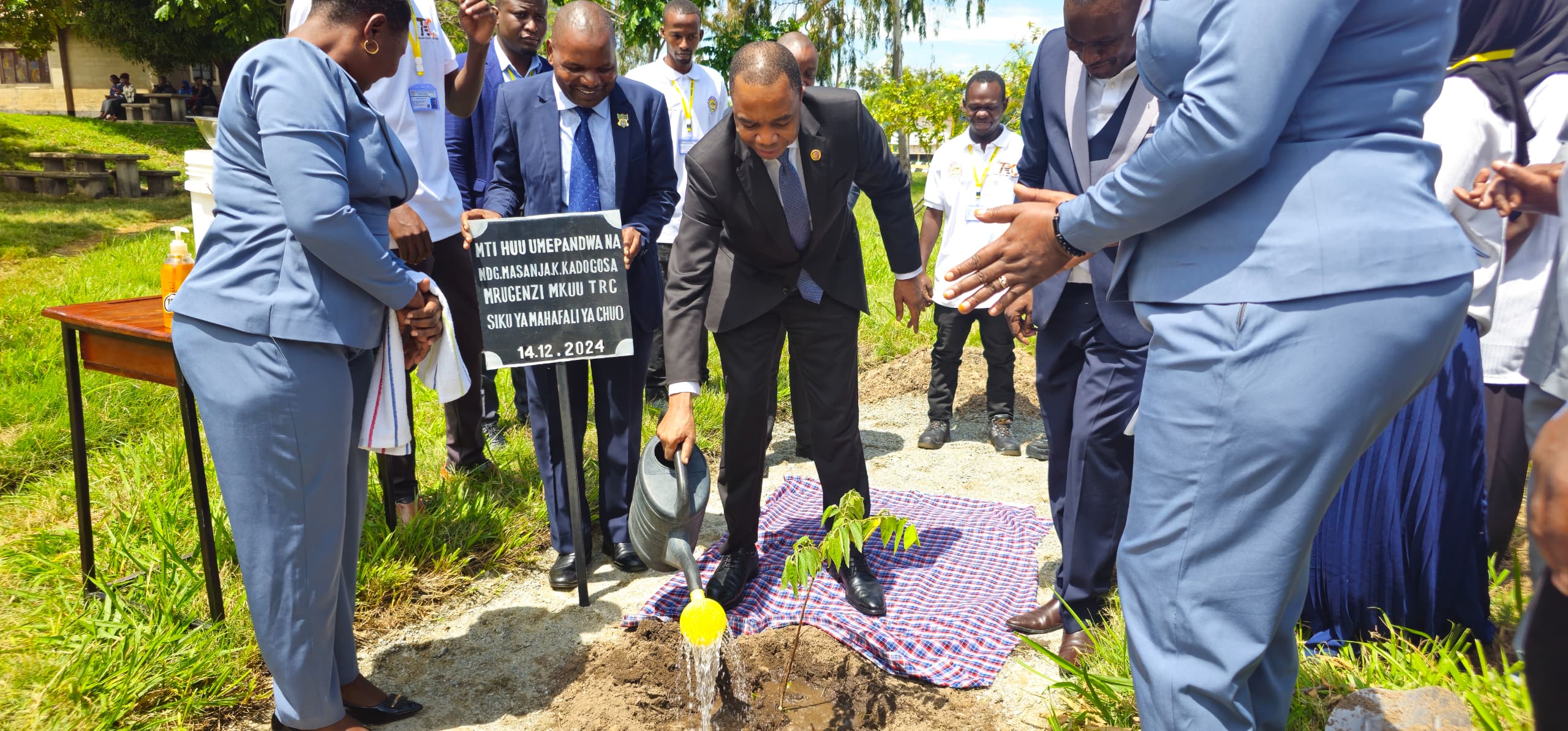 Mkurugenzi Mkuu wa Shirika la Reli Mr. Masanja K. Kadogosa akipanda mti wa kumbukumbu Siku ya Mahafali.
